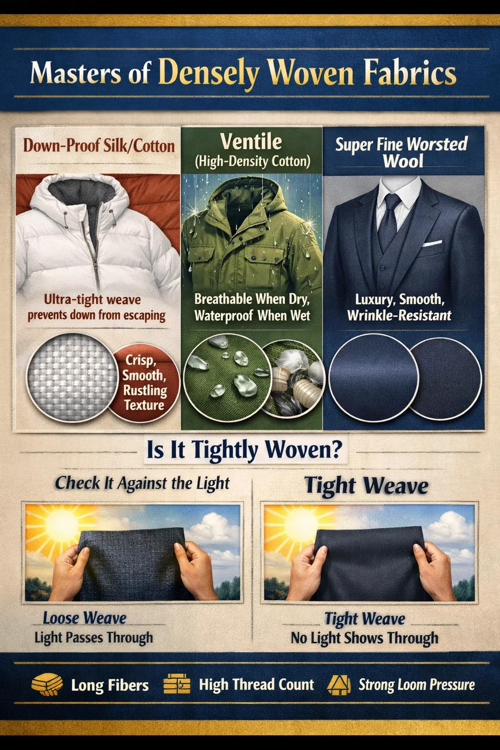 Walau bagaimanapun, dalam kehidupan seharian dan industri tekstil profesional, fabrik berikut terkenal dengan ketumpatan tinggi yang menakjubkan: