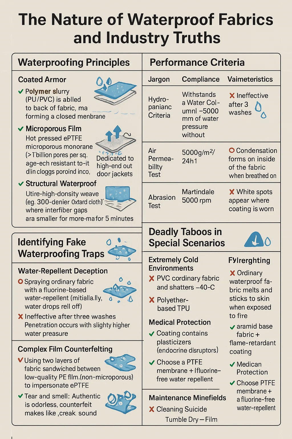 Pemalsuan Filem Kompleks: Menggunakan dua lapisan kain yang diapit di antara filem PE berkualiti rendah (bukan microporous) untuk menyamar sebagai Eptfe. ** Tear dan Bau: Authentic adalah bau yang tidak berbau, bau palsu seperti diesel. ** Gosok dan dengar: Authentic membuat bunyi "swish", palsu membuat bunyi "creak".